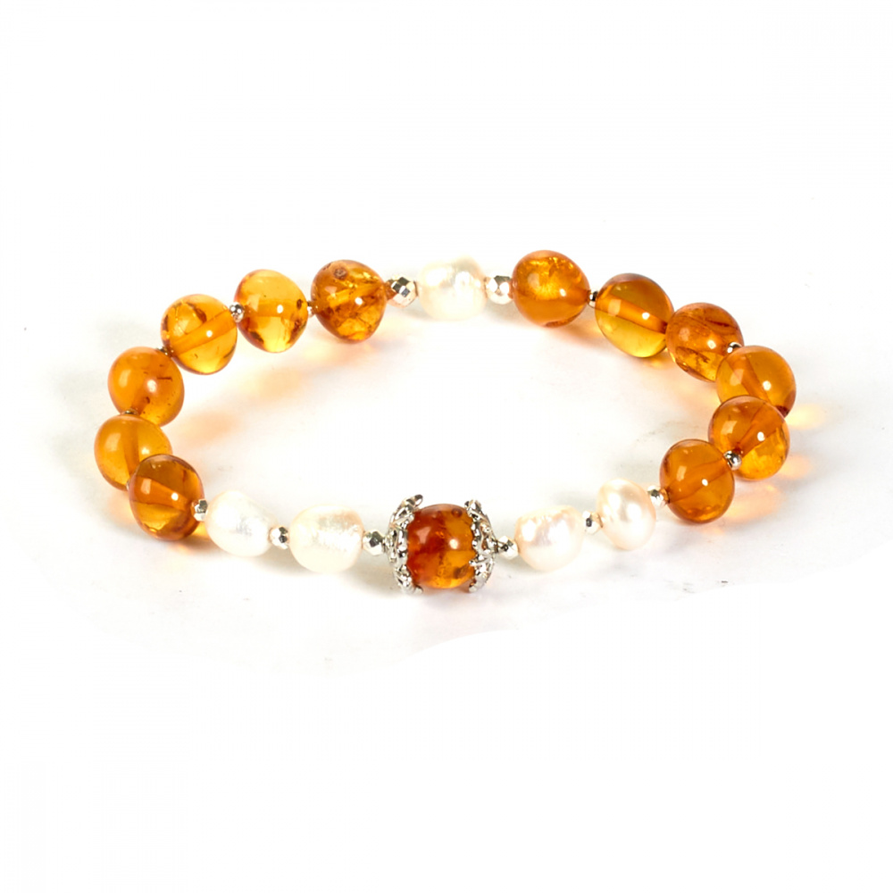 Браслет "Дуэт" из Янтаря и жемчуга